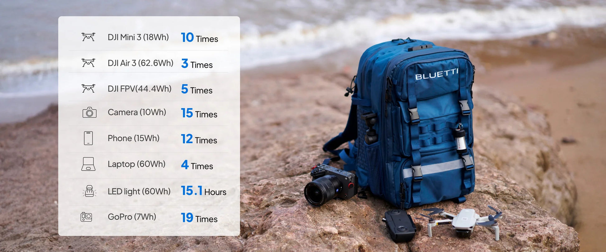 Pensada para la vida en movimiento, la mochila presenta un diseño ergonómico y transpirable con una capacidad de carga de 30 kg para la máxima comodidad. La innovadora tecnología de carga solar fragmentada se activa automáticamente con la luz del sol, aprovechando al máximo cada rayo, incluso en días nublados. Con capacidad para cargar hasta 5 dispositivos simultáneamente, puedes alimentar tu dron, cámara, smartphone y portátil, asegurándote de estar siempre listo para la acción.