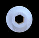Douille blanche moulée pour l'agitateur et l'attachement de la roue dentée.