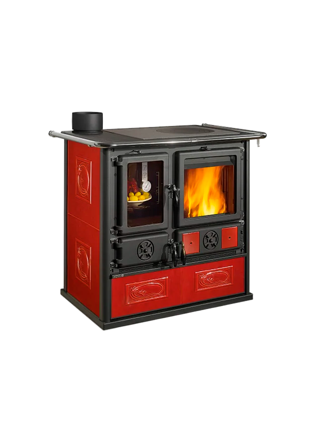 Handcrafted in ItalyThe Rosa Sinistra Reverse Ceramic is a specialized wood-burning cooker designed to meet the demands of unique kitchen layouts without sacrificing performance. Featuring a left-side smoke outlet and a "reversed" configuration (hearth on the right, oven on the left), this model provides a highly efficient solution for specific installation requirements. Clad in elegant Bordeaux tiles with a premium cast iron hearth, it furnishes your home with sustainable warmth while allowing you to enjoy the authentic flavor of wood-fired cooking.