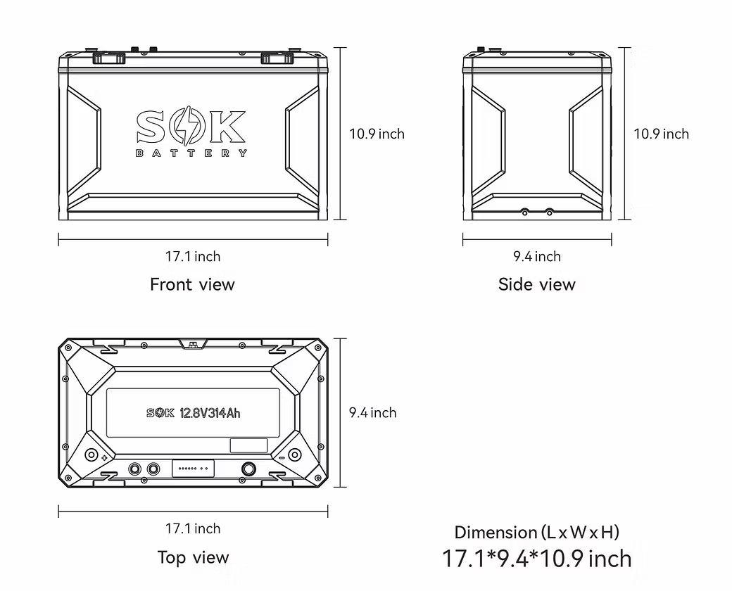 The SOK SK12V314PH is an industrial-grade energy powerhouse designed for serious off-grid, marine, and RV applications. With a massive 314Ah (4019Wh) capacity in a single IP67 case, this battery replaces multiple smaller units, saving wiring complexity and space.