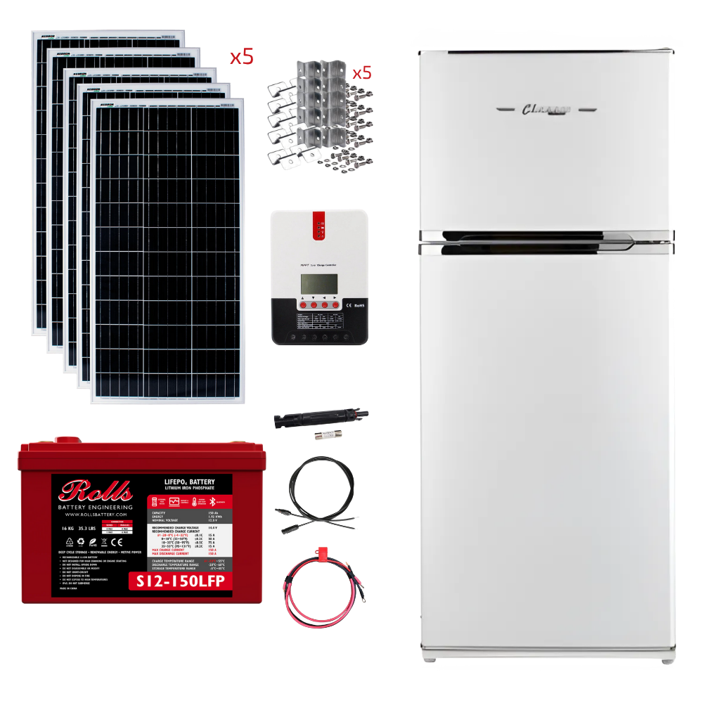 Unique 14 Cu/Ft Classic Retro Solar DC Fridge Stand-Alone Solar Power System