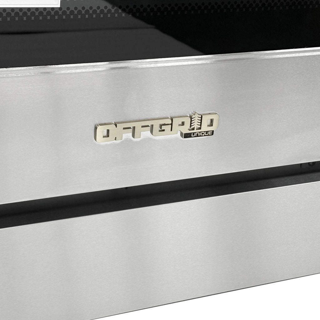 Traditional ranges require hydro to operate their electronics and ignitors. The Unique Off-Grid series uses a standard 1.5V D-cell battery to power the pilotless ignition system, ensuring you can bake, broil, and sear even when the power is out.